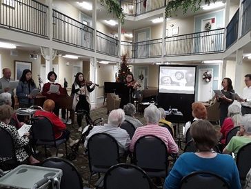 We're All Together began as a musical program on December 1st, 2017. By recruiting fellow musicians, friends, and volunteers from Rhode Island, Texas, and Florida, we quickly expanded to become a multi-state organization. Over the course of four years, we have been able to play for over 3,000 people. For a moment, they are able to let go of their concerns and lose themselves in the relaxing music. We hope to touch the lives of many more with the gift of music.